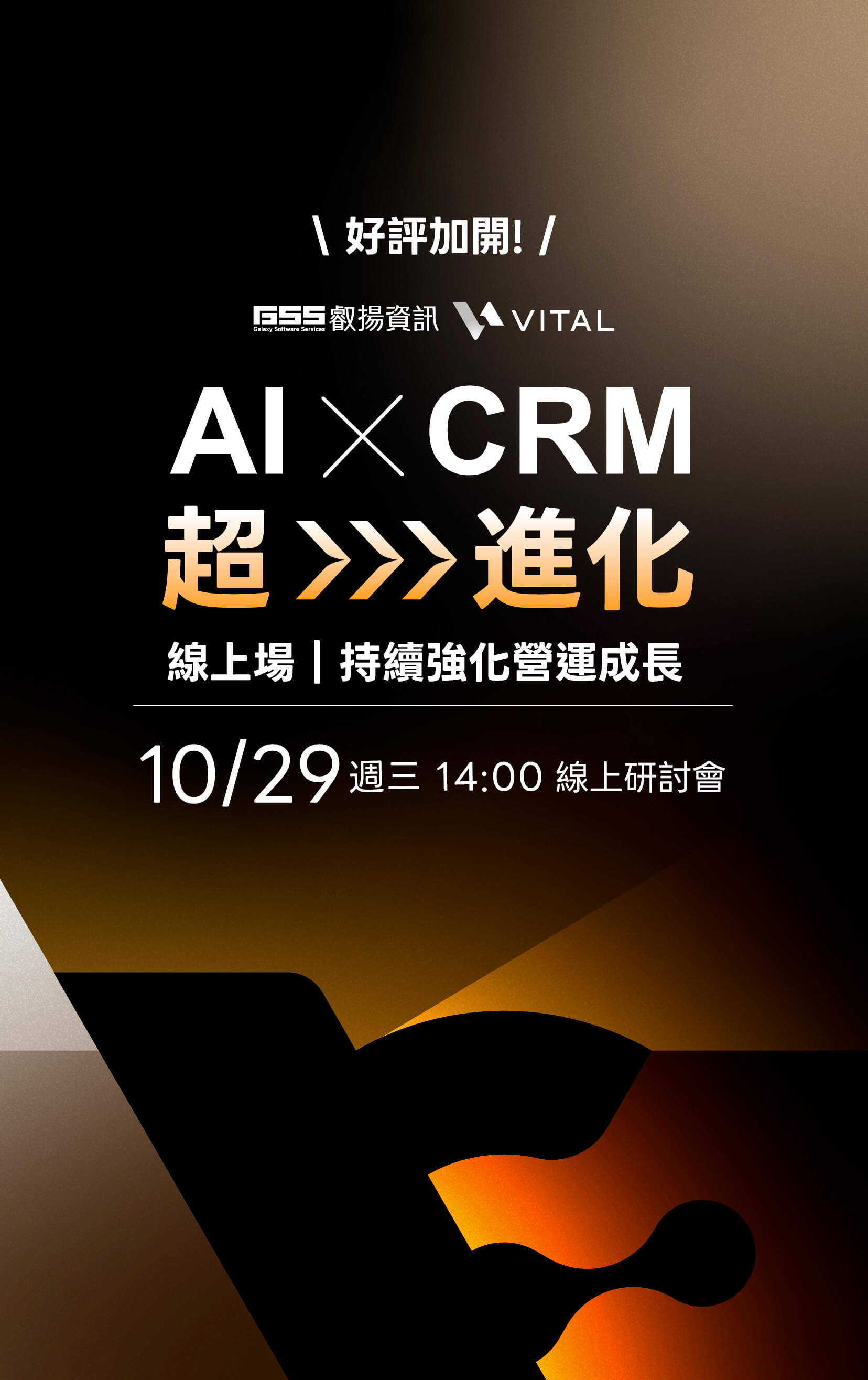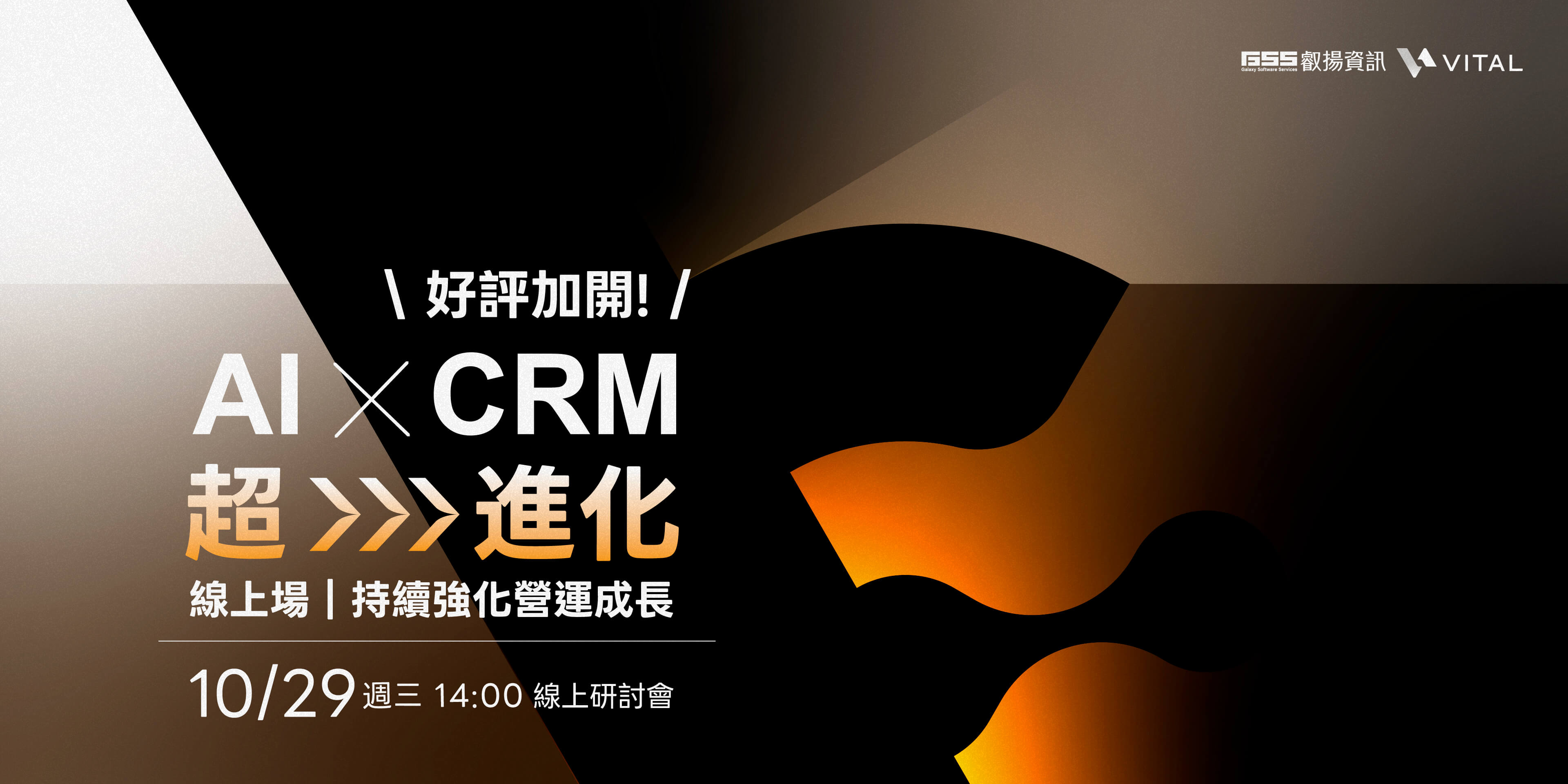 本場次無論是 Vital CRM 的用戶或是想瞭解更多管理技巧的企業,別讓部門各自為政,誠摯邀請您,一起把握商機的「超進化引擎」線上加開!切勿錯過!