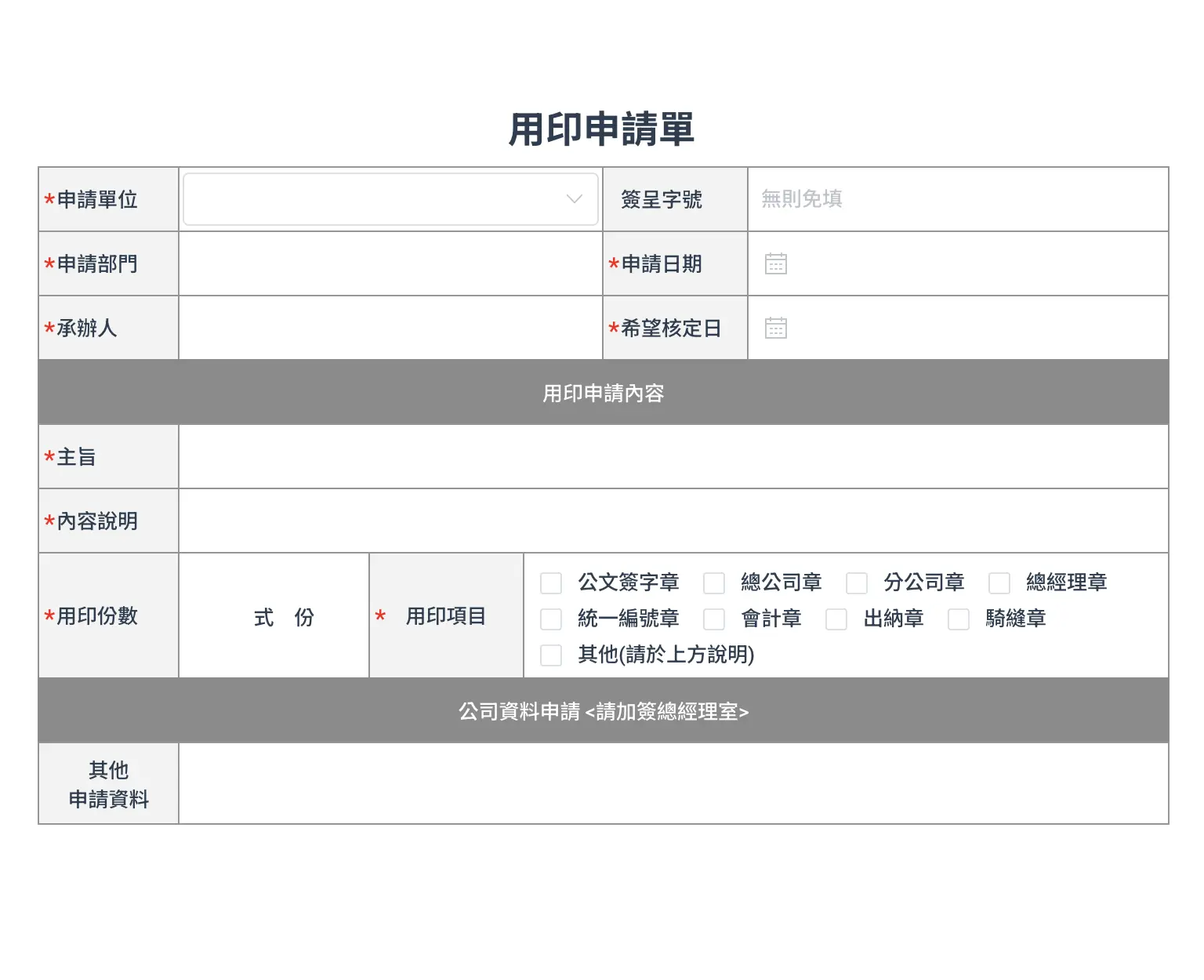 企業需要跟不同客戶作報價、簽合約都需要內部作用印,而內部用印都需要進行申請的程序,透過表單裡面去關聯原本有關的合約或報價等,正是可以透過Vital BizForm達成的。